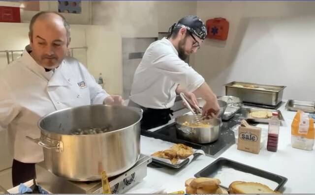 Antoni Rubies, de l’Arrosseria Antoni Rubies d’Artesa de Lleida, va dissenyar per l’ocasió un menú que es va obrir amb un aperitiu a base de formatge, embotits i coques de recapte. Una vegada a taula, i després de la presentació de la festa lleidatana, els convidats italians van descobrir la cuina del caragol amb degustació de Caragols a la llauna amb allioli de pera i vinagreta i Caragols a la Gormanda. El plat principal del sopar va ser una Terrina de cua de bou amb caragols i pastís de patata, formatge i tòfona. El final dolç es va concebre com un agermanament de cuina catalana i italiana amb una versió de Torrada de Santa Teresa a base de Panettone, Ratafia i Torró d’Agramunt.